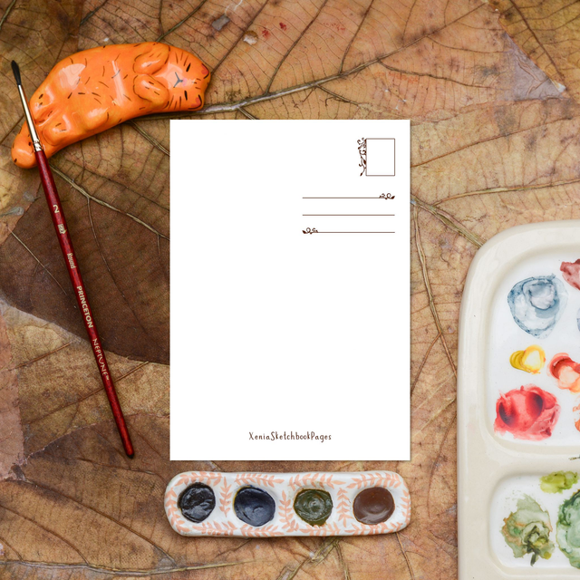 A high-quality print of original watercolor design, made on thick premium-quality texture paper. The postcard can be used as a greeting card, or framed to decorate the walls in your room. Can be sent without envelope. The back side of the card has the address lines and a place for a post stamp.